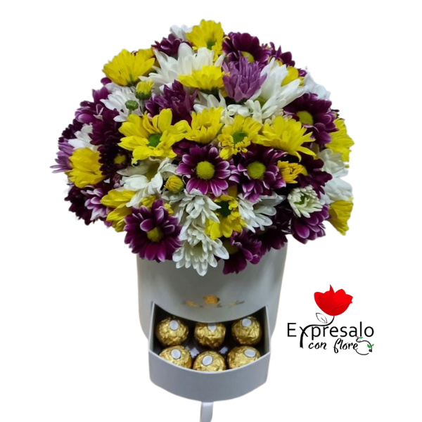 Lindo Box con margaritas surtidas y 6 deliciosos bombones